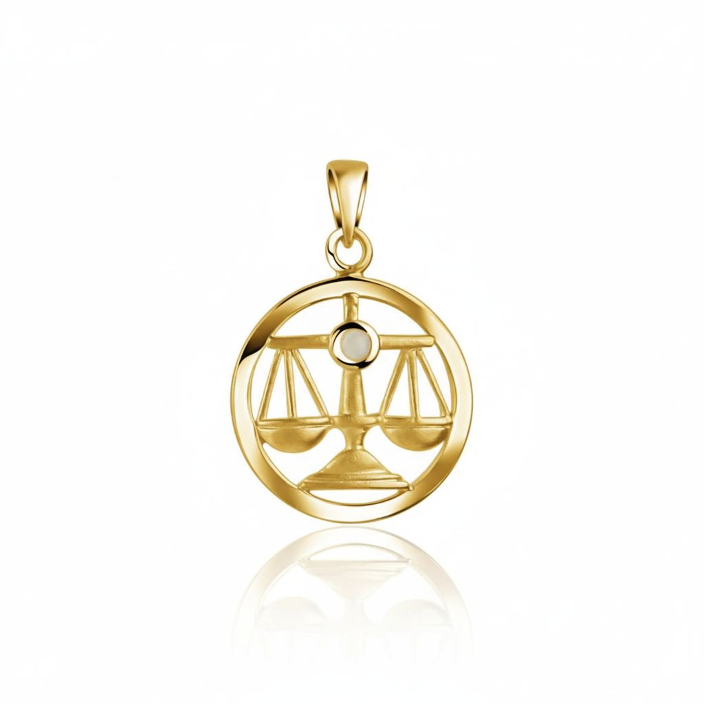 Dieser edle Anhänger zeigt das Symbol der Waage und ist mit einem echten Opal verziert. Gefertigt aus vergoldetem 925/- Sterling Silber überzeugt er durch seine glänzende Oberfläche und das filigrane Design. Ein besonderes Schmuckstück für Damen, die Wert auf Eleganz und Symbolkraft legen.