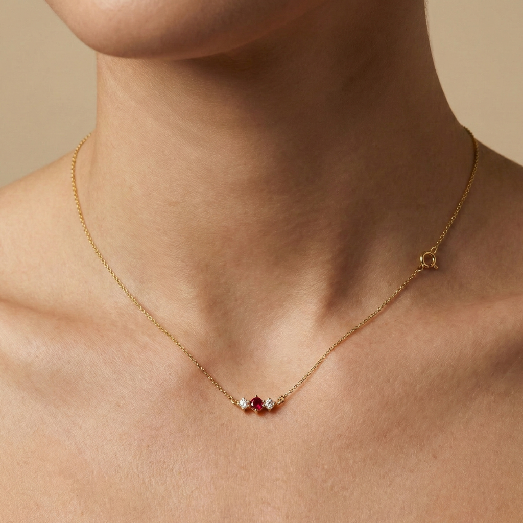 Diese zarte Halskette kombiniert einen strahlend roten Topas mit funkelnden weißen Zirkonia-Steinen und sorgt so für ein stilvolles Farbspiel. Gefertigt aus 375/- Gold und vergoldet, vereint sie elegantes Design mit hochwertiger Verarbeitung. Ein perfektes Schmuckstück für festliche Anlässe oder als täglicher Blickfang.