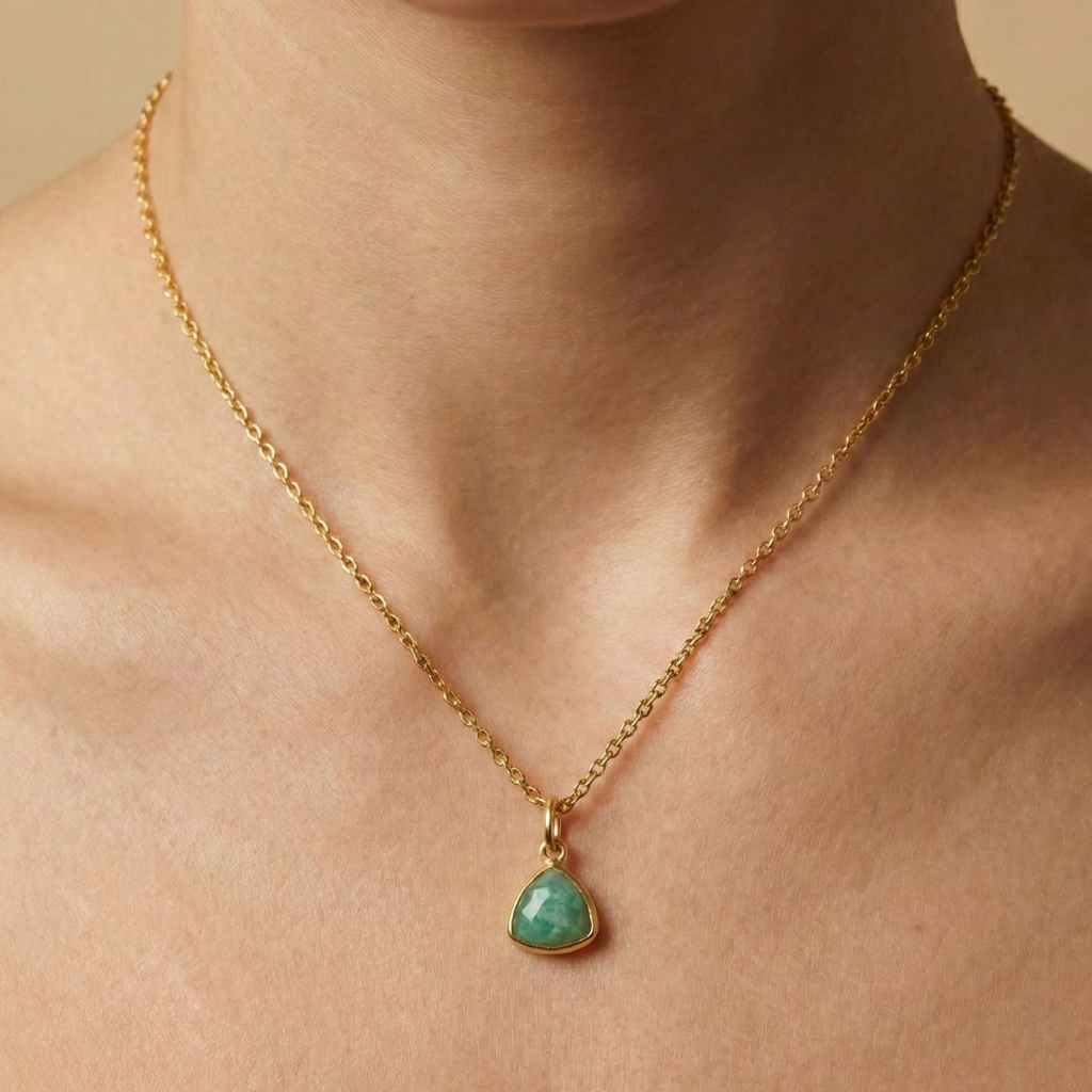 Dieser Anhänger vereint feine Handwerkskunst mit der natürlichen Schönheit des Amazonits, der im Facettenschliff besonders edel funkelt. Die Kombination aus glänzend vergoldetem Silber und dem grünen Edelstein verleiht dem Schmuckstück eine stilvolle Frische, die sowohl im Alltag als auch zu besonderen Anlässen begeistert. Ein moderner Klassiker, der jedem Look eine elegante Note hinzufügt.