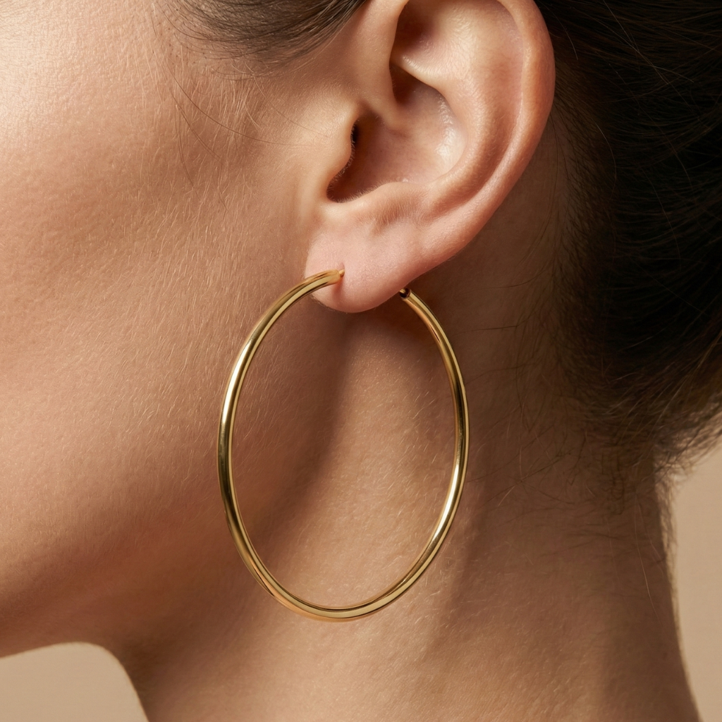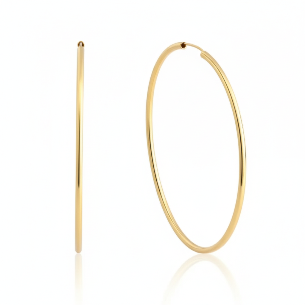 Diese schlichten, aber eindrucksvollen Creolen aus vergoldetem Sterling Silber überzeugen mit einer klaren Linienführung und einer femininen Ausstrahlung. Mit ihrer großzügigen Länge von 6 cm sind sie ein modisches Statement – edel, aber dezent.