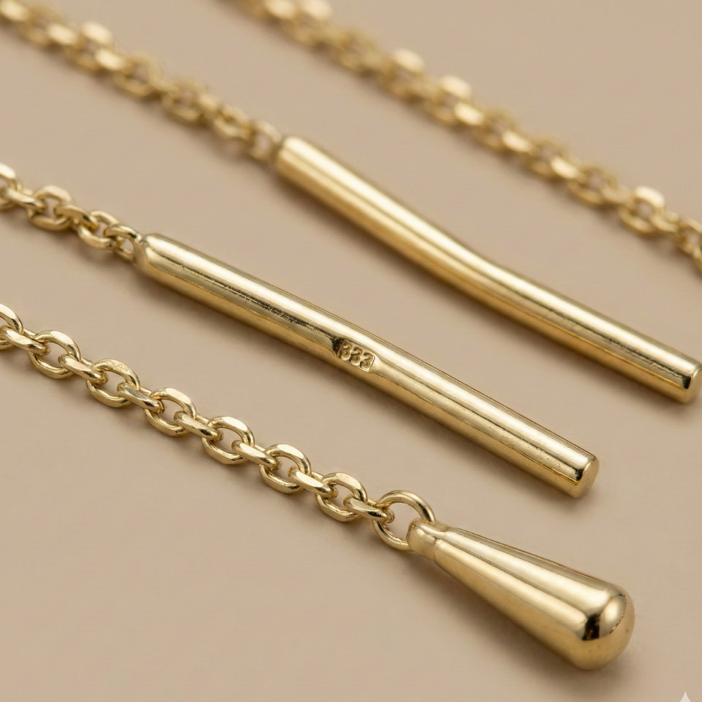 Diese filigranen Durchzieh-Ohrringe aus 333er Gelbgold verkörpern moderne Eleganz in besonders leichter Form. Ihre schlanke, längliche Silhouette schmeichelt dem Gesicht und schwingt bei jeder Bewegung sanft mit – feminin, stilvoll und ausdrucksstark zugleich.