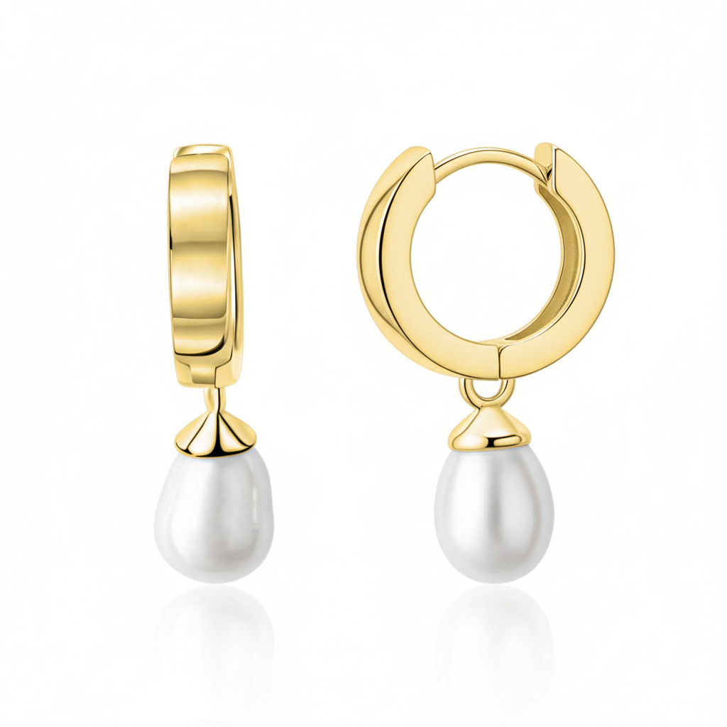 Diese stilvollen Creolen mit Perlenanhänger vereinen klassische Eleganz mit modernem Chic. Das hochwertige 375er Gelbgold verleiht dem Design eine luxuriöse Ausstrahlung, während die weißen Perlen einen femininen Akzent setzen.