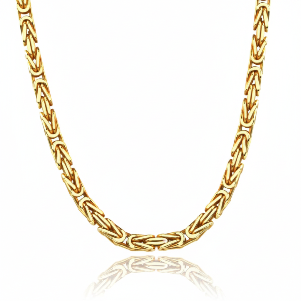 Diese massive Königskette vereint zeitlose Eleganz mit hochwertiger Verarbeitung. Die kunstvolle Flechtung der Glieder sorgt nicht nur für einen stabilen Halt, sondern verleiht der Kette auch ihren charakteristischen, luxuriösen Look. Mit einer Länge von 50 cm liegt sie perfekt am Dekolleté an und lässt sich sowohl solo als Blickfang tragen als auch mit einem Anhänger kombinieren. Die edle Vergoldung auf glänzendem Sterling Silber unterstreicht ihre Wertigkeit und macht sie zu einem stilvollen Begleiter für jeden Anlass – von festlichen Momenten bis hin zum täglichen Statement-Schmuckstück.