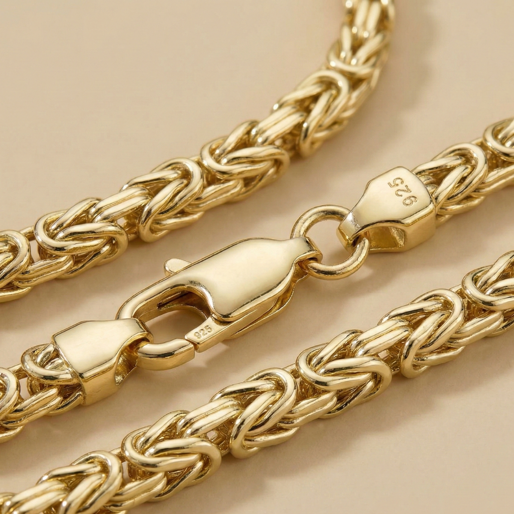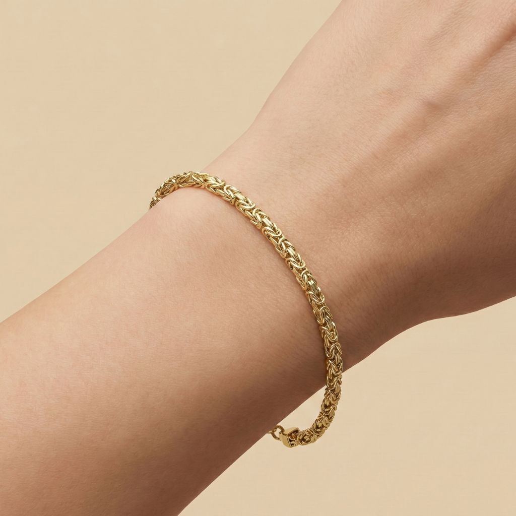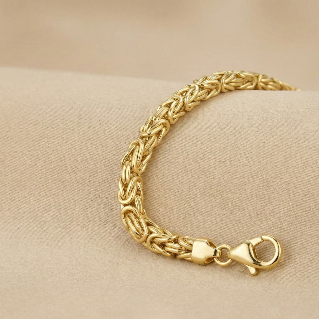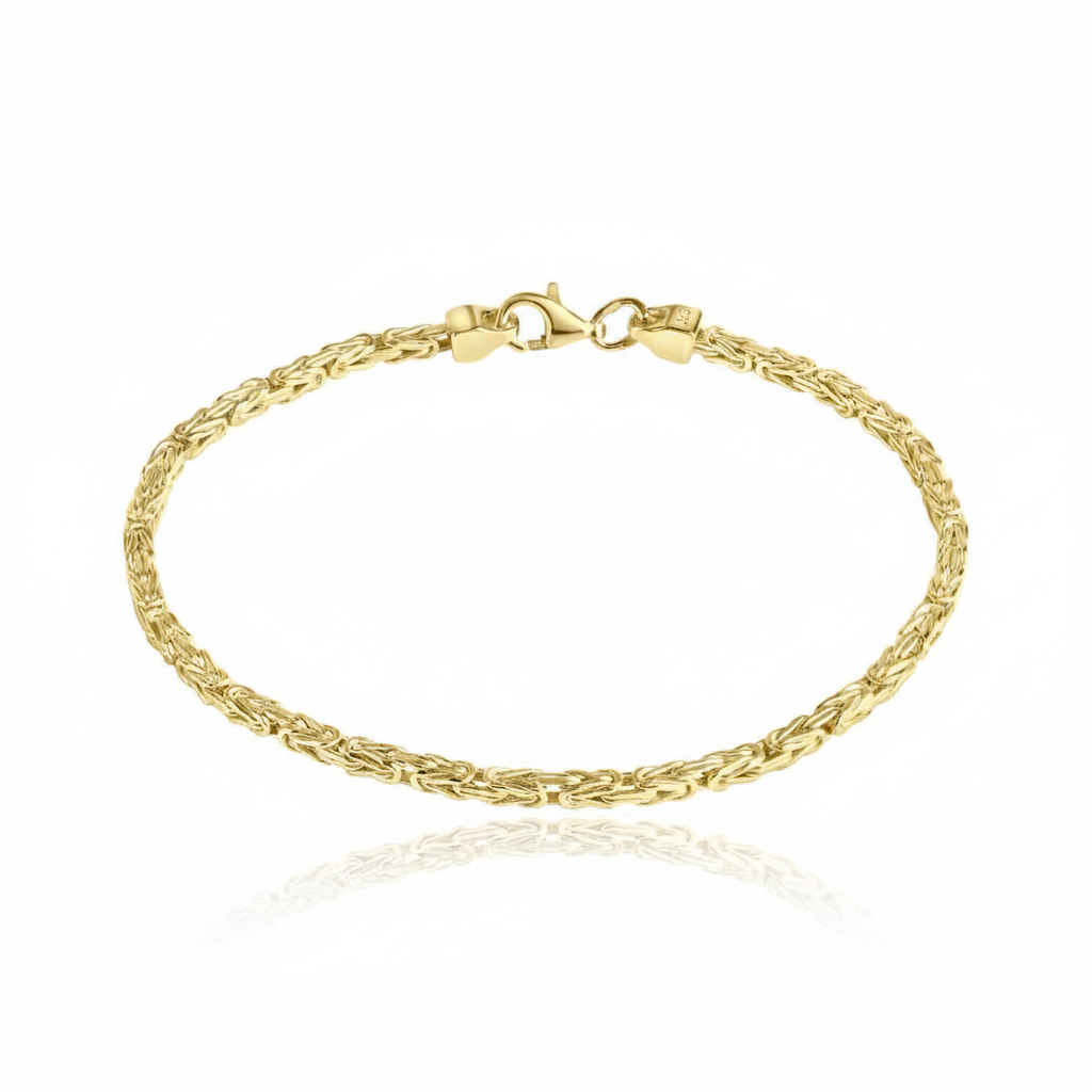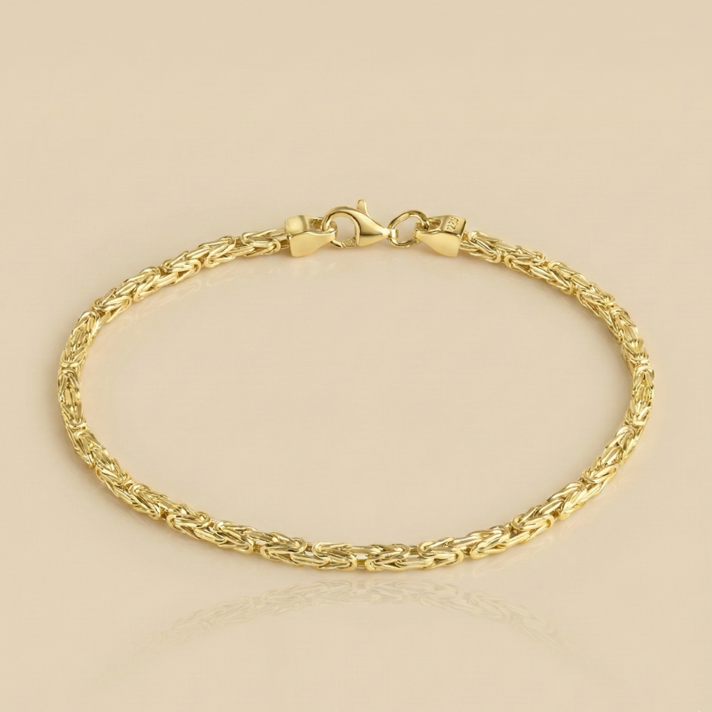 Dieses elegante Damenarmband präsentiert sich in der edlen Optik einer Königskette und überzeugt mit seiner filigranen, doch robusten Gliederung. Die hochwertige Vergoldung bringt den Glanz des Sterling Silbers besonders schön zur Geltung und verleiht dem Armband eine luxuriöse Ausstrahlung. Mit einer Breite von 4 mm und einer Länge von 21 cm schmiegt es sich angenehm ums Handgelenk und lässt sich dank des stabilen Karabinerverschlusses sicher tragen. Ob als stilvoller Begleiter im Alltag oder als glänzendes Highlight zu besonderen Anlässen – dieses Armband ist ein vielseitiges Schmuckstück, das klassische Eleganz und zeitlosen Stil vereint.