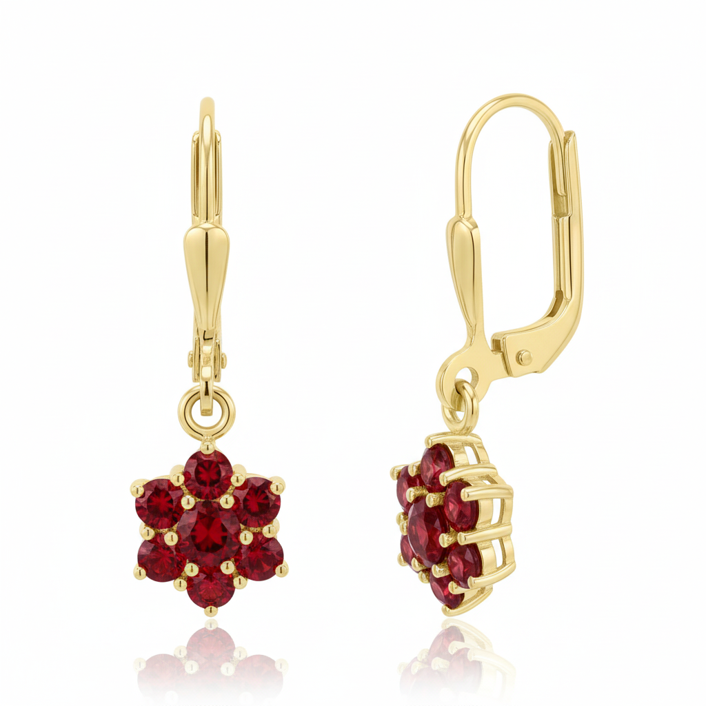 Diese eleganten Ohrhänger aus 333er Gelbgold verbinden klassische Formgebung mit der leidenschaftlichen Tiefe von 14 facettierten Granatsteinen. Ihr sattes Rot harmoniert perfekt mit dem warmen Glanz des Goldes und verleiht dem Schmuckstück eine kraftvolle, ausdrucksstarke Note.