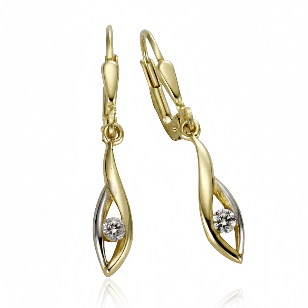 Diese Ohrhänger bestechen durch ihre raffinierte Bicolor-Optik in edlem 333 Gold, die einen modernen Kontrast aus Gelb- und Weißgold schafft. Der strahlend weiße Zirkonia in der Mitte bringt funkelnde Akzente ins Design und macht die Ohrringe zu einem stilvollen Begleiter. Mit ihrer filigranen Länge von 3 cm wirken sie feminin und elegant – perfekt, um jedes Outfit aufzuwerten, sei es im Alltag oder zu besonderen Momenten.