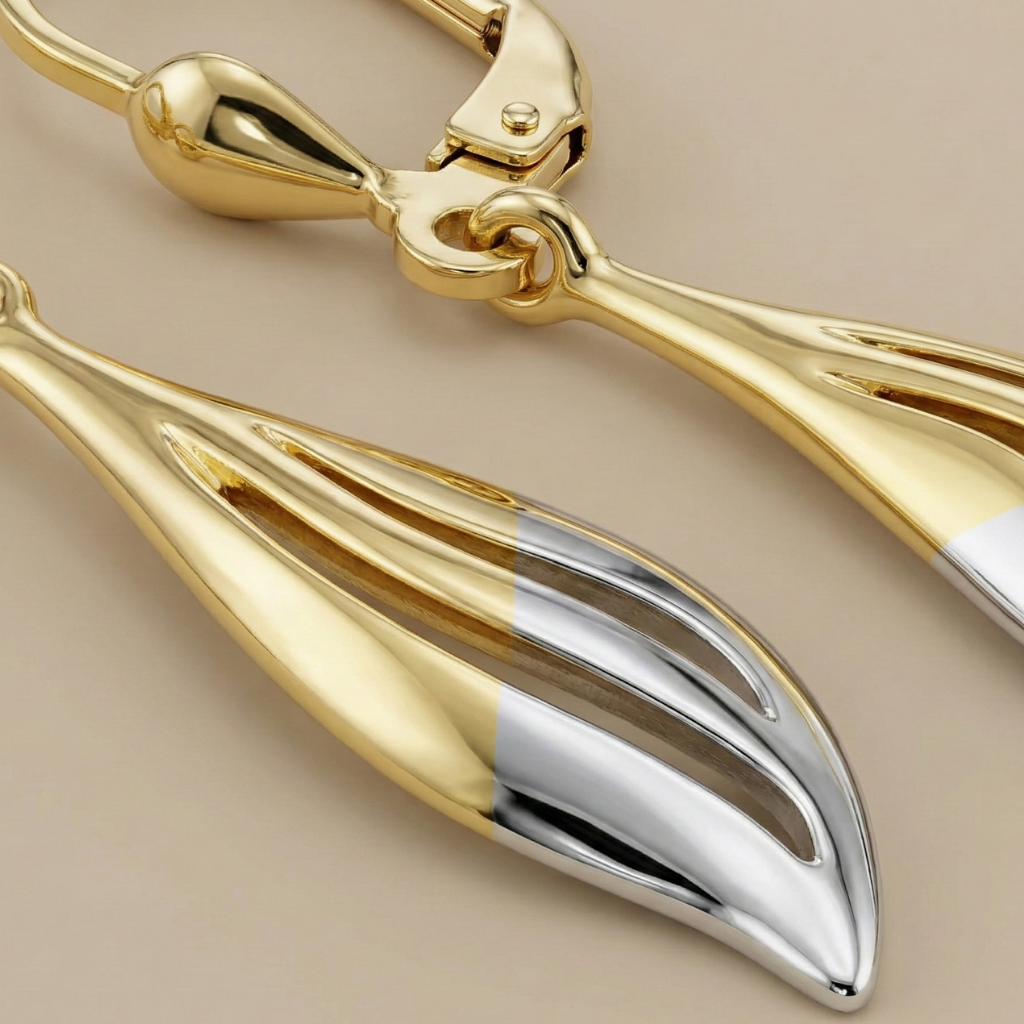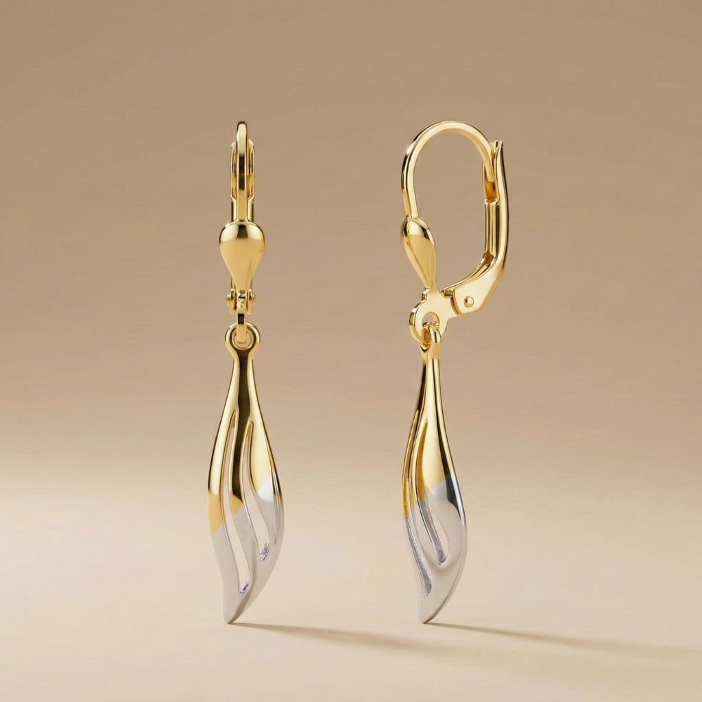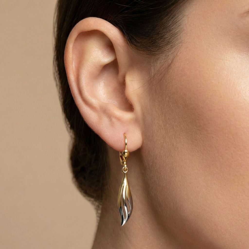 Klassisch trifft modern – diese edlen Ohrhänger aus 375er Gold verbinden stilvolle Zurückhaltung mit ausdrucksstarker Eleganz. Die teils rhodinierte Oberfläche sorgt für ein spannendes Spiel aus kühlem Glanz und warmem Goldton – ein echter Blickfang bei jeder Bewegung.