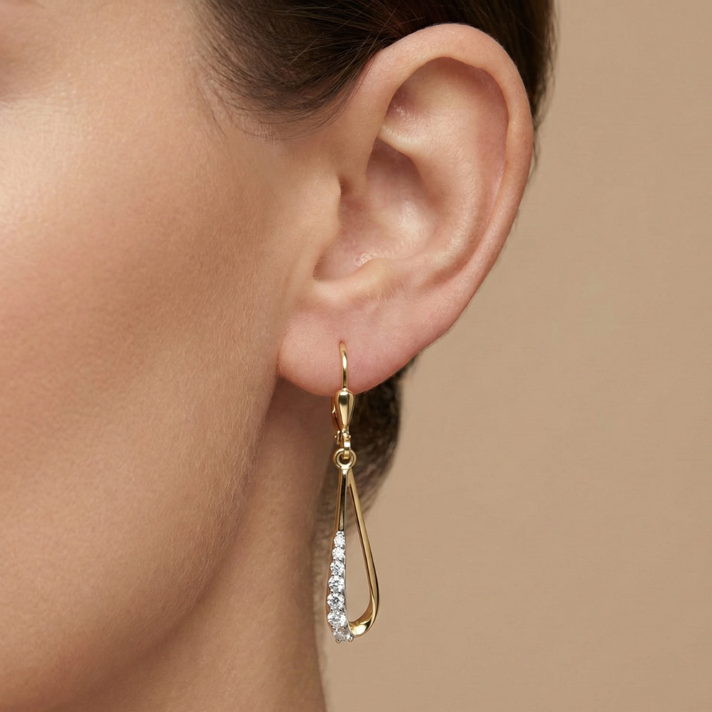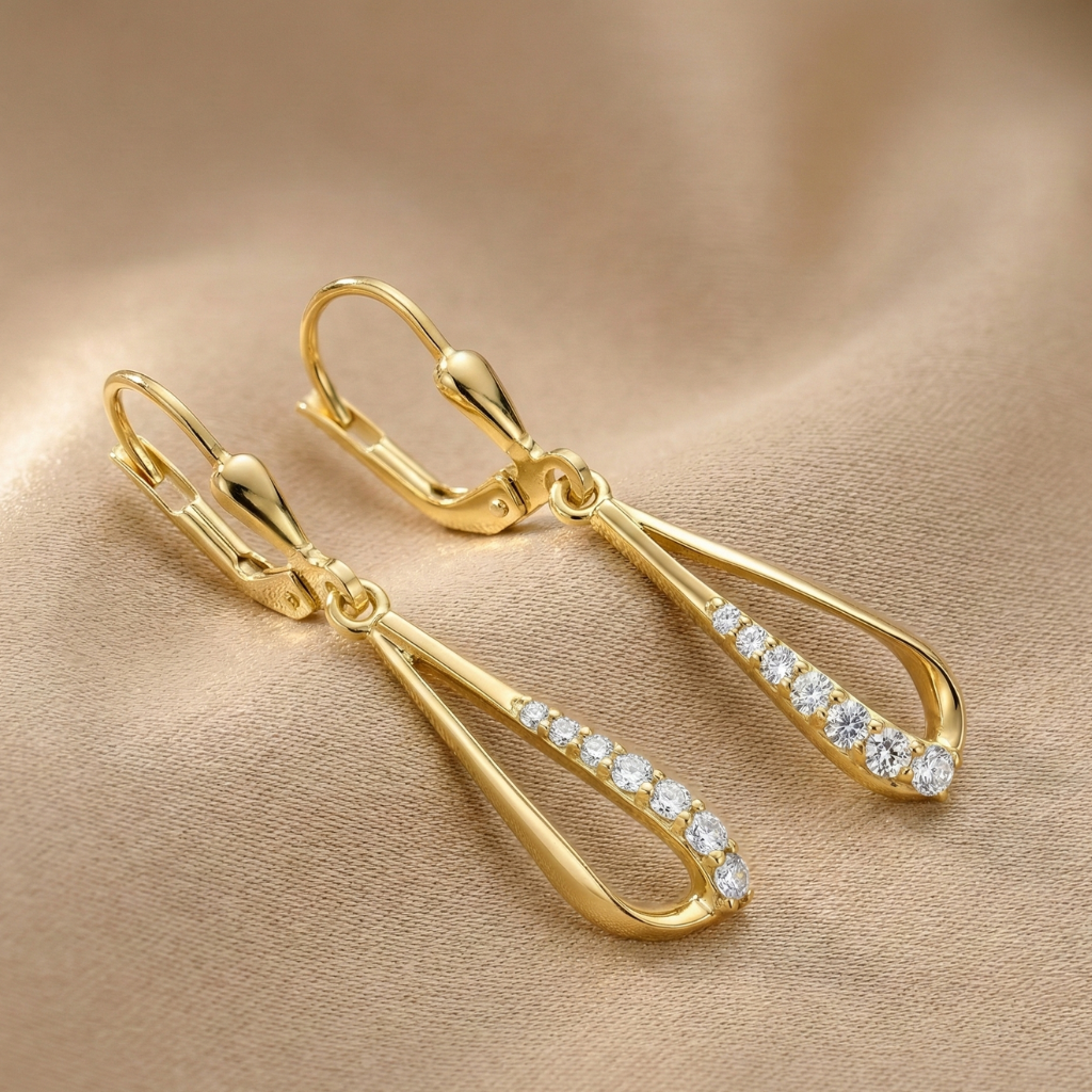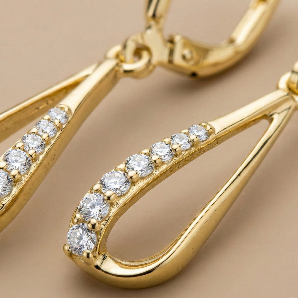 Diese eleganten Ohrhänger vereinen modernes Design mit klassischer Eleganz. Die filigrane Tropfenform wird durch 14 funkelnde Zirkonia veredelt, die im Licht wunderschön schimmern und dem Schmuckstück eine feminine Raffinesse verleihen. Mit einer Länge von 3,7 cm setzen die Ohrhänger ein stilvolles Statement – perfekt für besondere Anlässe, aber auch als edles Accessoire im Alltag.