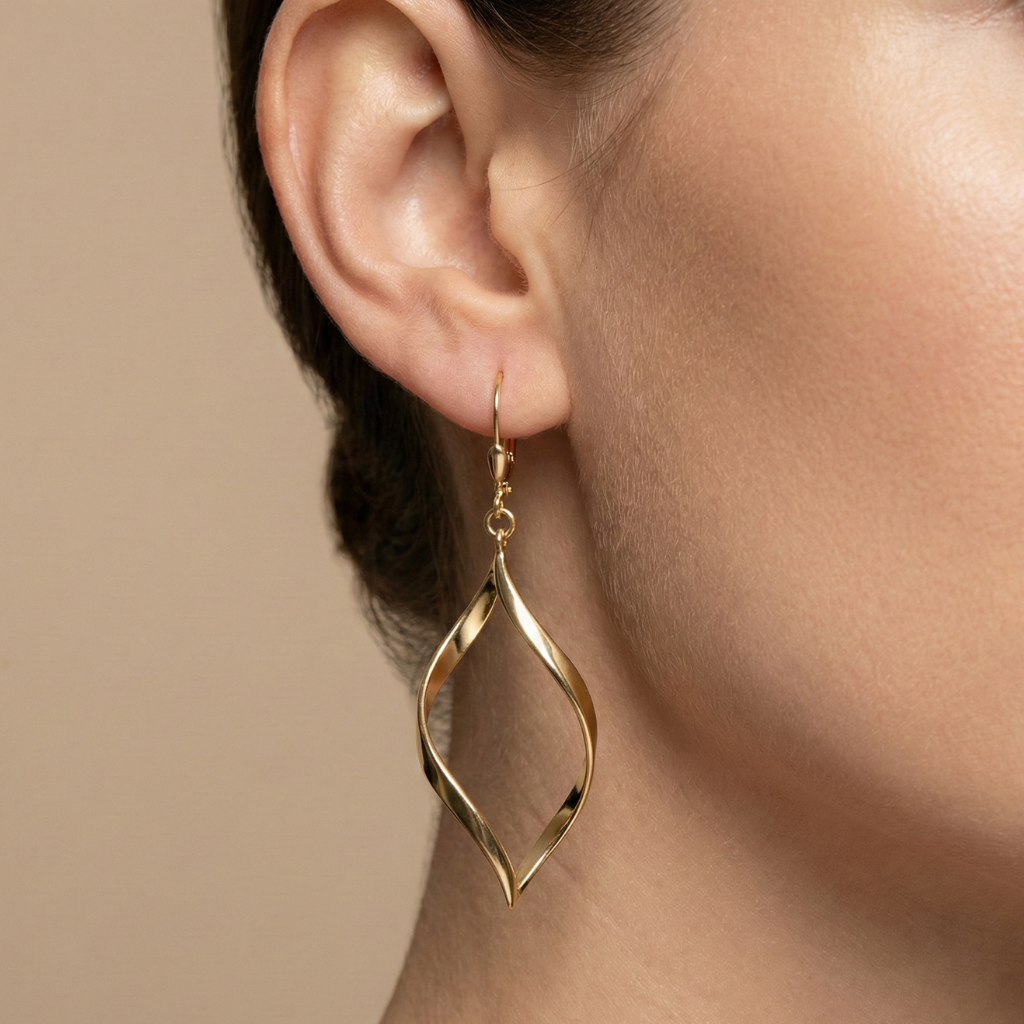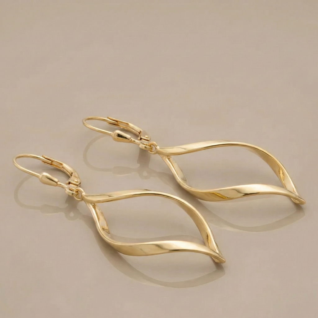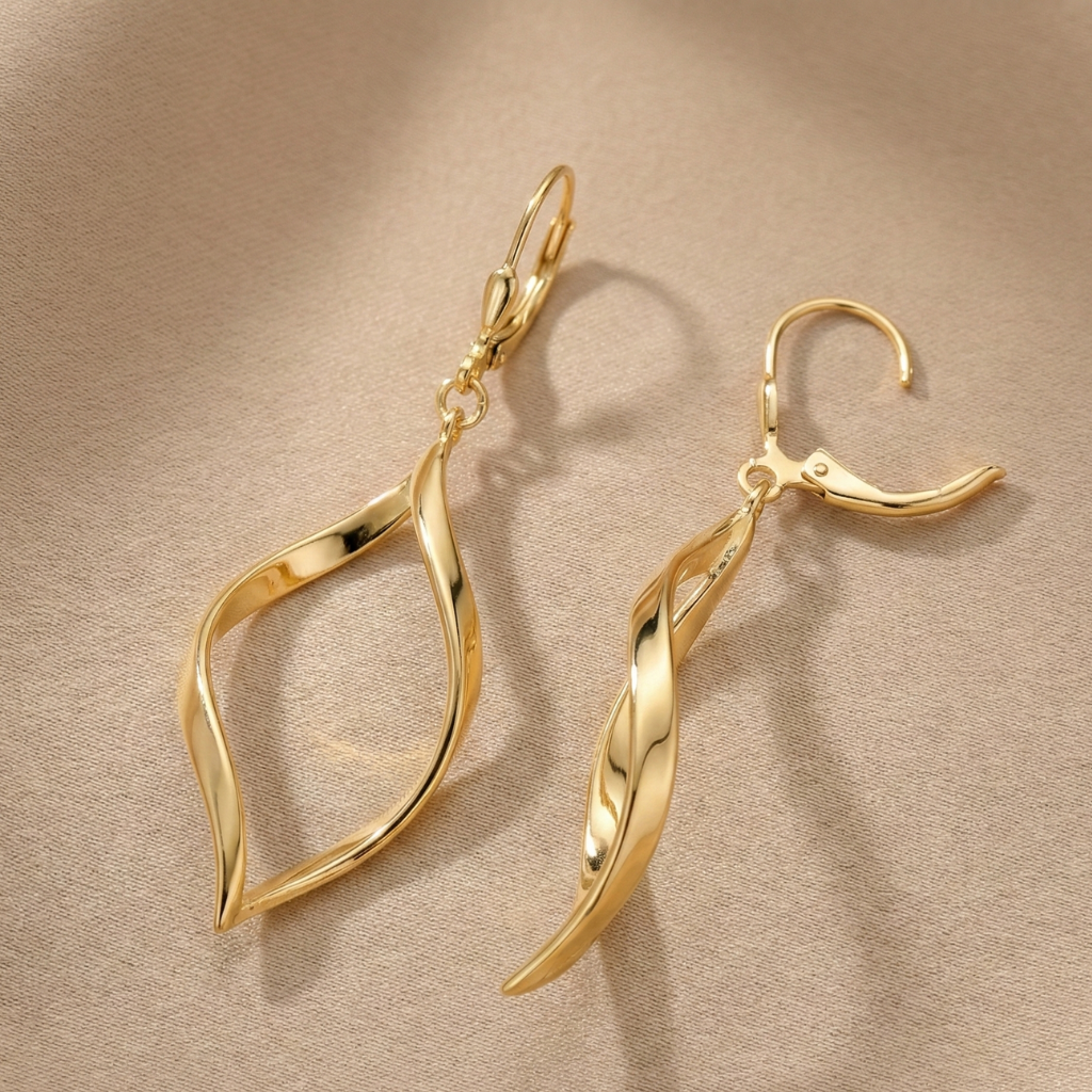Diese edlen Ohrhänger aus vergoldetem 925/- Sterling Silber begeistern durch ihr raffiniertes, geschwungenes Design. Die offene, gedrehte Form verleiht den Ohrringen Leichtigkeit und Bewegung, während die glänzende Oberfläche das Licht harmonisch reflektiert.
