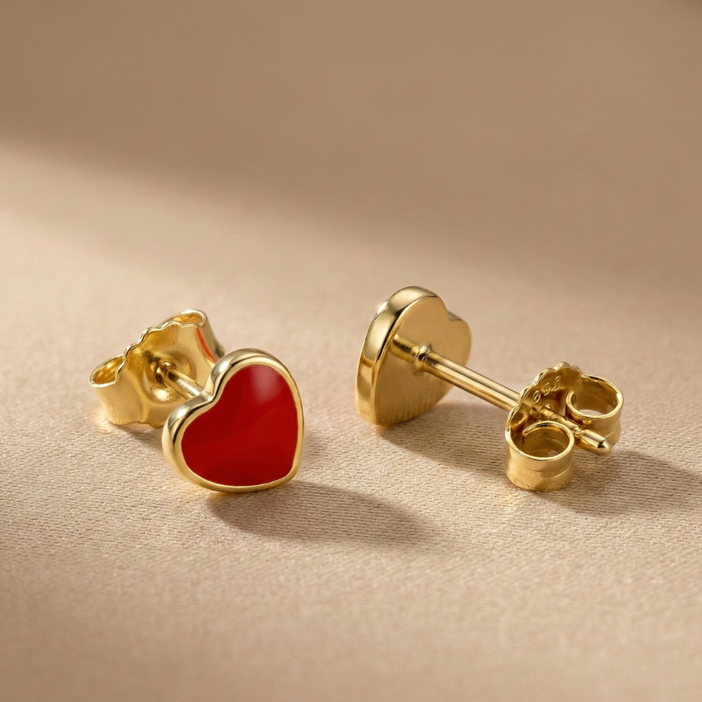 Kinder Ohrstecker Herz rot 333/- Gold – Verspielt. Farbenfroh. Liebevoll.