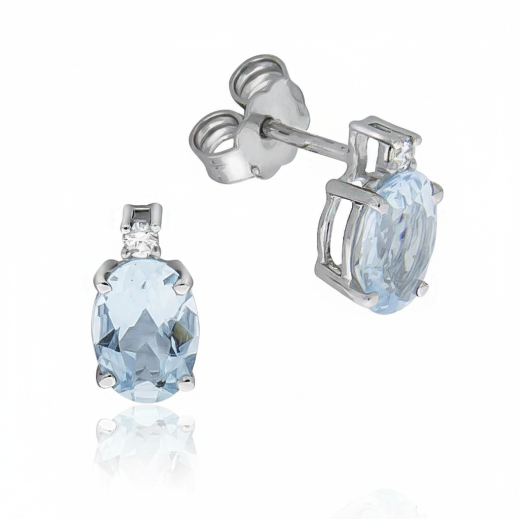 Damen-Ohrstecker aus 375 Weißgold mit Aquamarin und Brillant