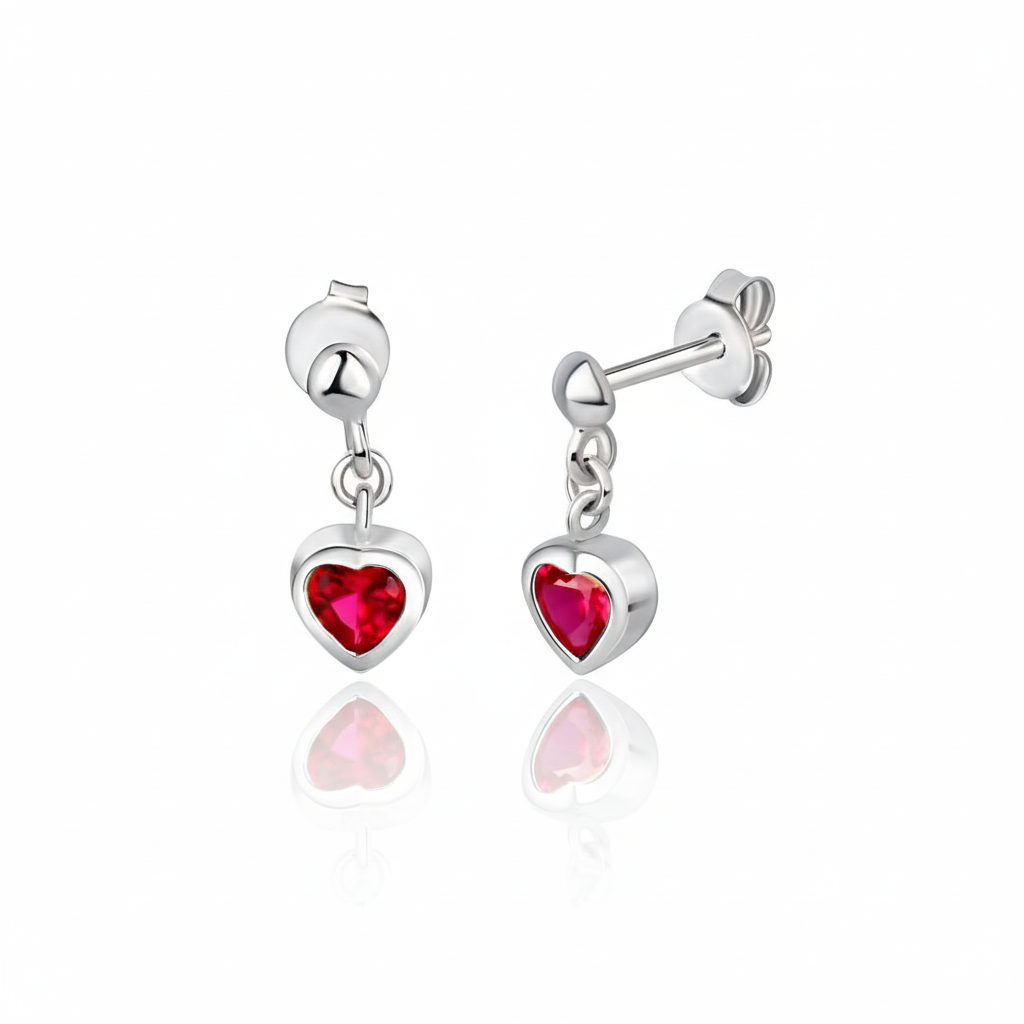 Diese kindgerechten Ohrstecker aus rhodiniertem 925 Sterling Silber bezaubern mit roten Herz-Anhängern, die durch funkelnde synthetische Rubine geschmückt sind. Das glänzende Silber bildet dabei einen schönen Kontrast zum intensiven Rot der Steine.