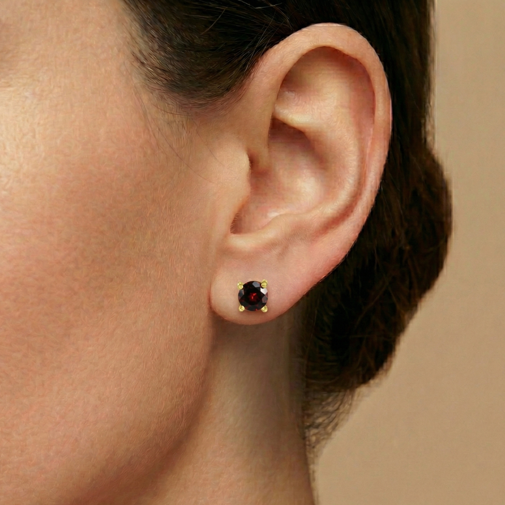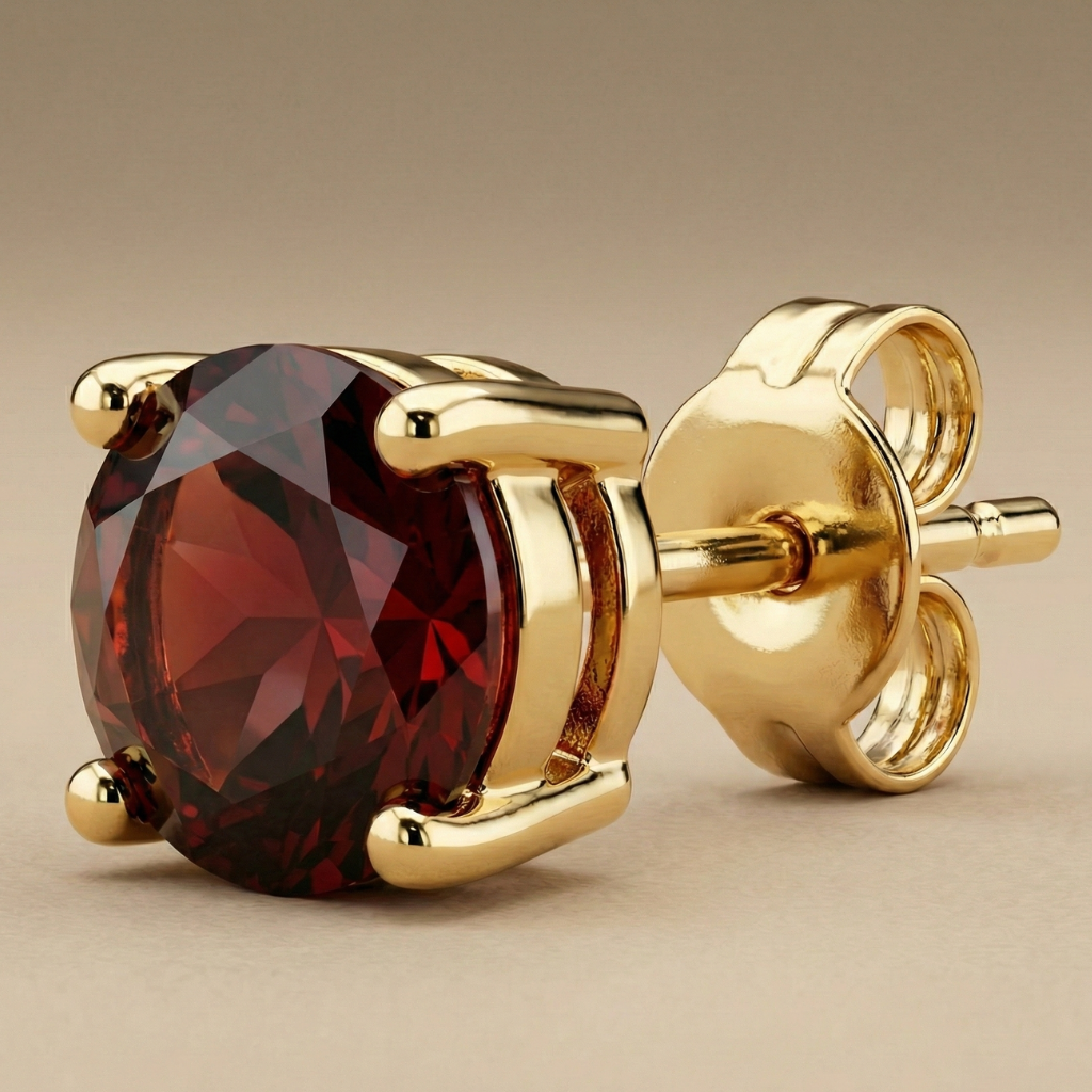 Diese edlen Ohrstecker präsentieren zwei leuchtend rote Granate, die in glänzend vergoldetem 925 Sterling Silber gefasst sind. Die warmen Rotnuancen des Granats bilden einen faszinierenden Kontrast zum edlen Goldton und verleihen dem Schmuckstück eine klassische und zeitlose Eleganz. Perfekt für jeden Anlass und ein stilvolles Highlight für jeden Look.