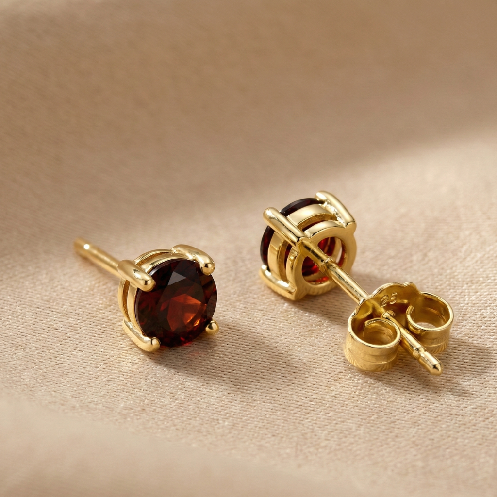 Damen-Ohrstecker mit Granat aus 925 Sterling Silber, vergoldet
