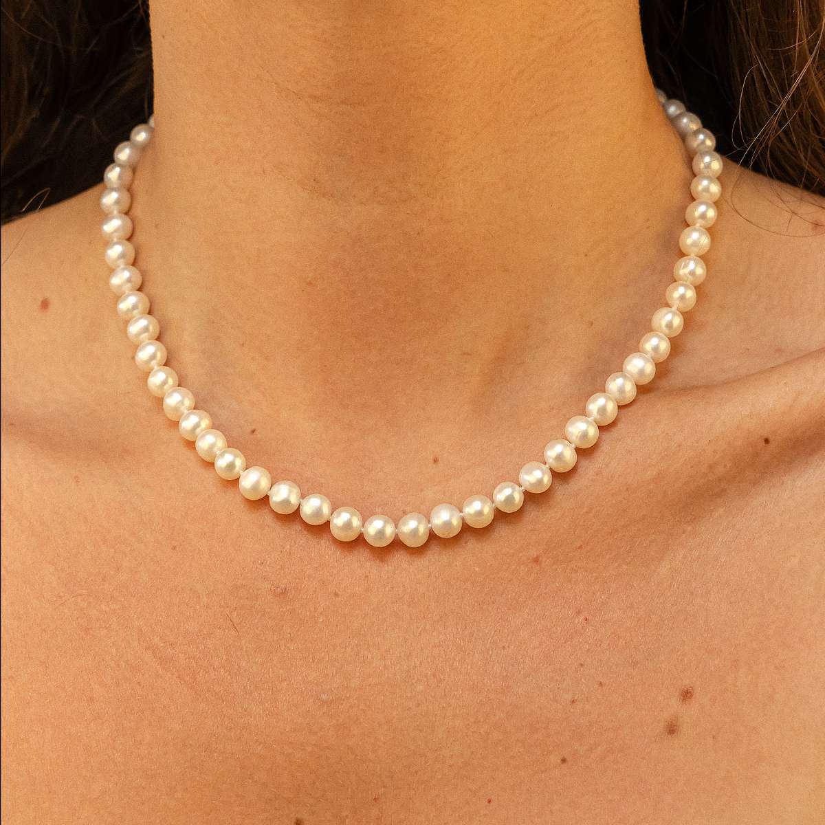Dieses Collier aus feinen Süßwasserzuchtperlen begeistert durch seine klassische Schönheit und feminine Ausstrahlung. Die gleichmäßig schimmernden Perlen verleihen dem Schmuckstück eine edle Optik, die sich sowohl im Alltag als auch zu besonderen Anlässen stilvoll tragen lässt.